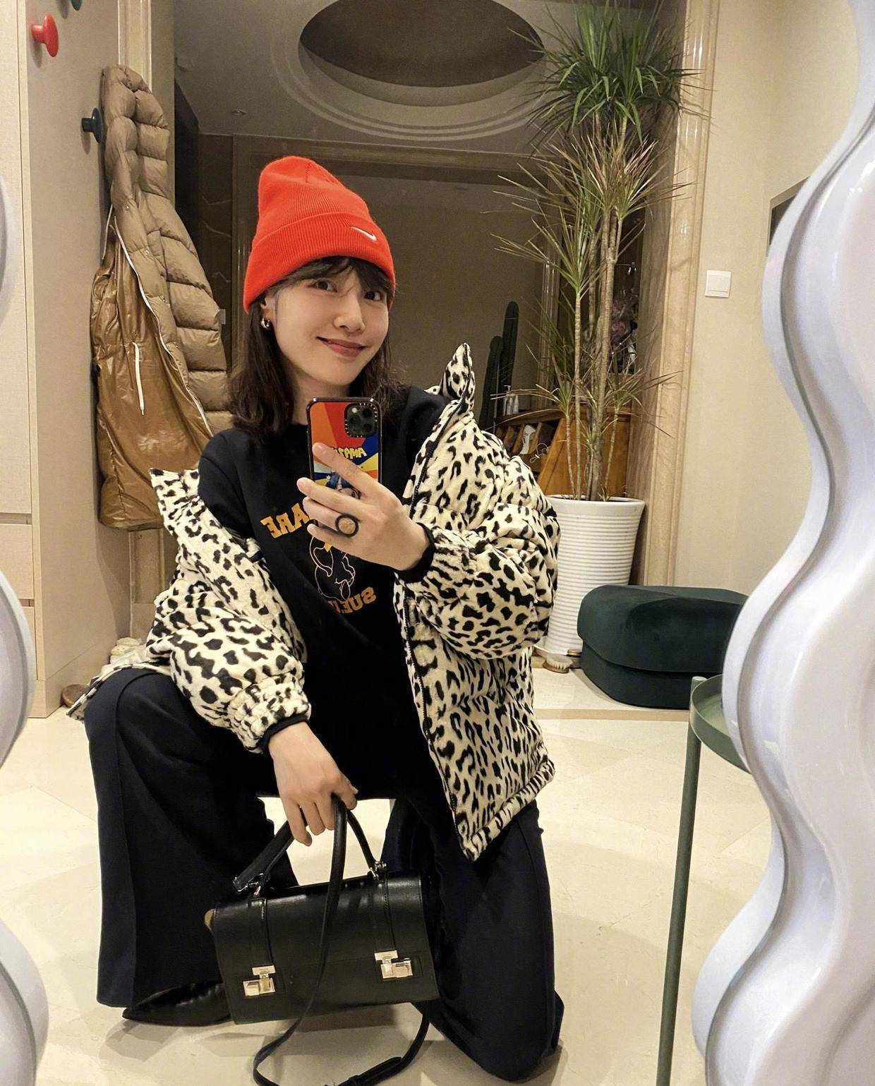 白百何不会一味地去追求“美丽冻人”,在寒冷的严冬季节,羽绒服是最好的选择。短款的羽绒服在点缀了豹纹元素的加持之后更显潮范,因为以白色为底,所以不会显得土俗,反而适合凹造型。