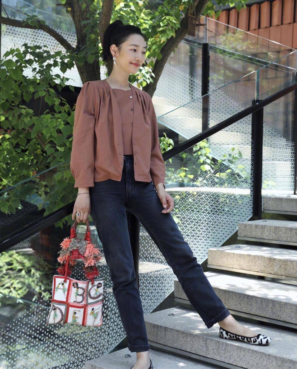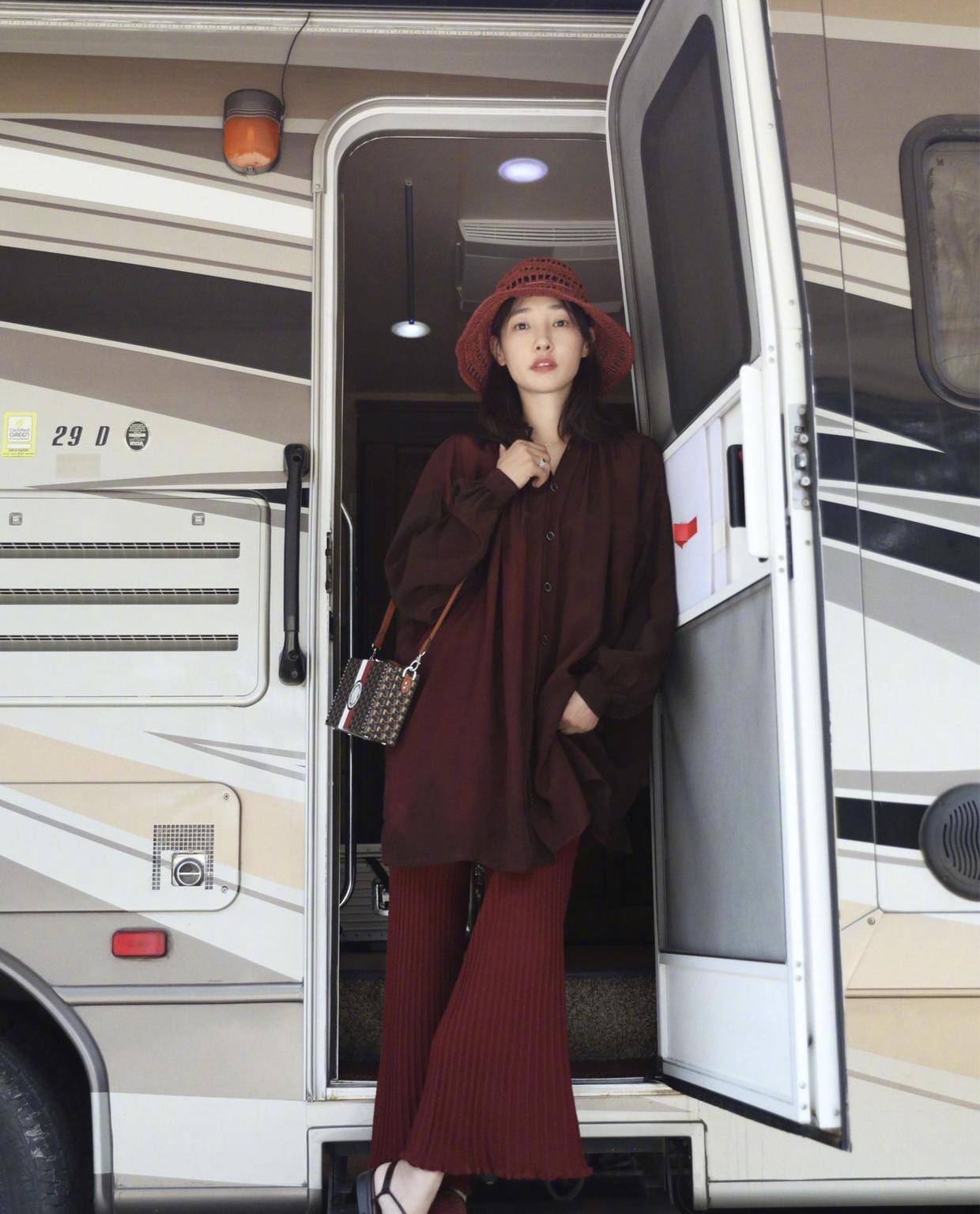 日常出行时,白百何很喜欢衬衫的搭配,毕竟它简约却高级,几乎怎么穿都不会出错,可塑性超强,如果你想保持整体风格的协调搭调,就可以利用“顺色搭配法”来凹造型,上下保持同色只会让你整个人看起来更加协调自然,白百何选择了暗红色,高级中不失女人味。