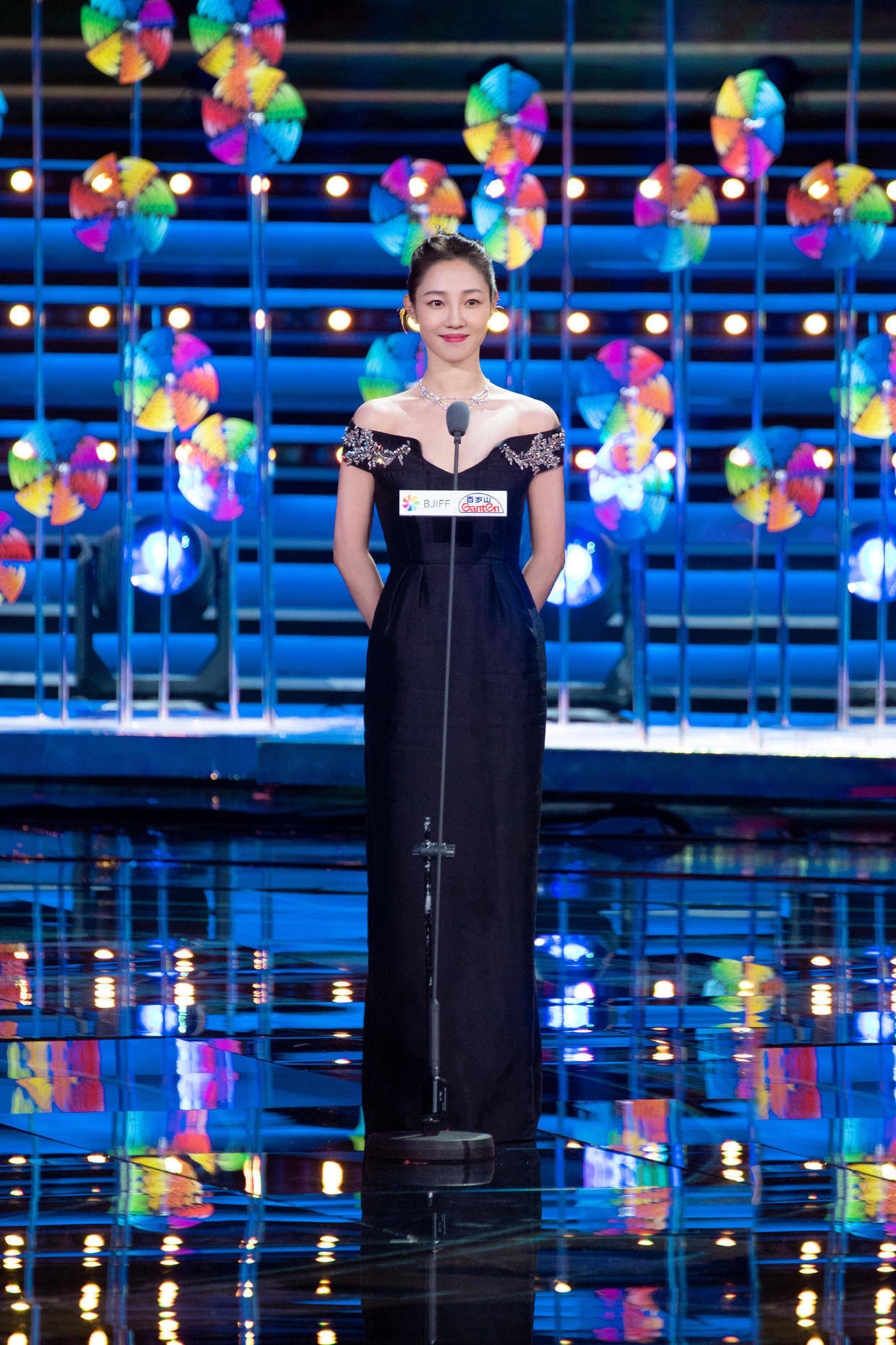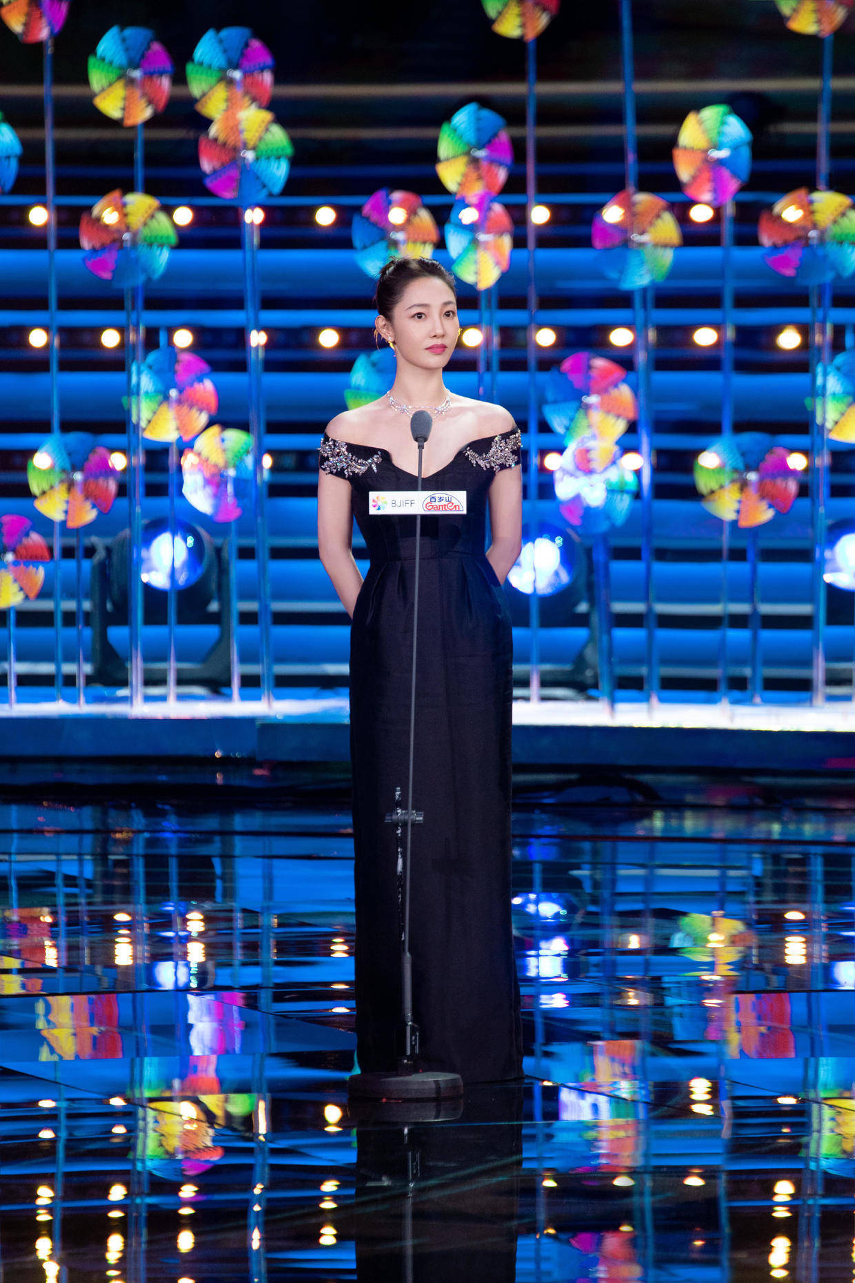 毕竟是礼服裙,长长的裙摆并不会显得很浮夸,而且整体呈现黑色,在礼服裙中这反而属于比较保守的款式了,它会完全遮住白百何的腿部线条,同时起到一定的修饰作用,对身高有要求,如果你的个子不够高挑,就容易穿出拖沓的感觉,看起来反而像小矮人。